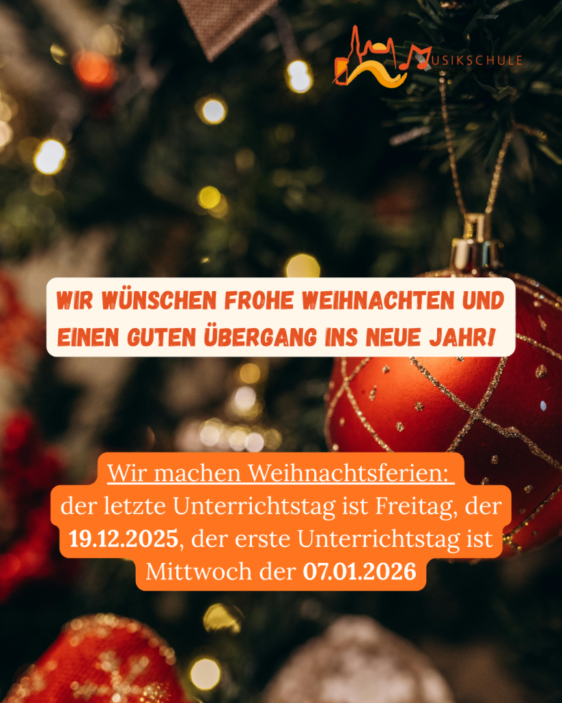 Am Samstag, den 31. Januar 2026, öffnet unsere Musikschule von 13:00 bis 16:00 Uhr ihre Türen für Groß und Klein! Der Nachmittag beginnt um 13:00 Uhr mit einer offenen Stunde der Musikalischen Früherziehung – ideal für Kinder, die spielerisch einen ersten Zugang zur Musik finden möchten. Im Anschluss laden wir alle Besucherinnen und Besucher zu unserem Instrumentenparcours ein. Hier können viele verschiedene Instrumente ausprobiert […]